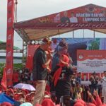 Calon presiden nomor urut 3, Ganjar Pranowo berkampanye terbuka di lampung selatan, Kegiatan dipusatkan di lapangan Lampung Selatan Expo, Kec....