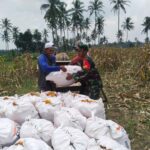 Babinsa Koramil 421-10/Katibung Kodim 0421/Lamsel Serda Arif Narwanto melaksanakan pendampingan swasembada pangan membantu warga yang sedang panen jagung di Desa karang jaya, kecamatan Merbau...