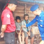 Lampung Selatan - Anggota sat polairud polres Lampung Selatan Aipda agung gede dan relawan berikan bantuan sembako kepada purwadi warga muara Piluk desa bakauheni...