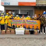 KALIANDA-- Angkatan Muda Partai Golkar (AMPG) Lampung Selatan di bulan suci Ramadhan berbagi takjil di depan kantor BNI...