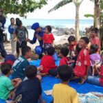 Polairud Polres Lamsel, bagikan Buku dan Susu Kepada Siswa di Wilayah Pesisir