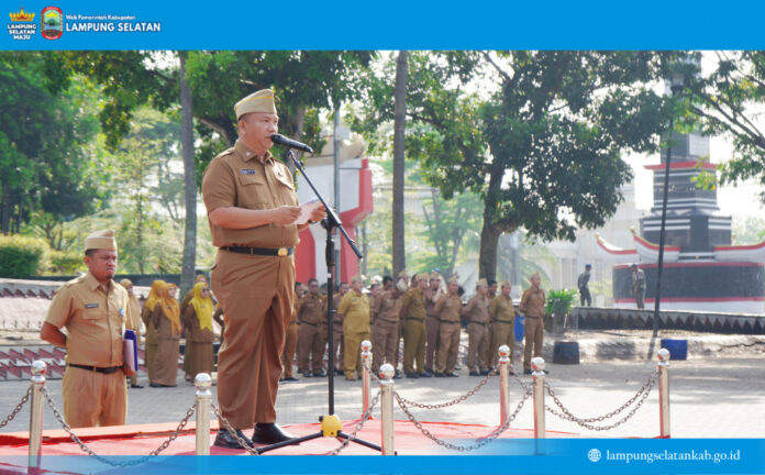 Menyampaikan amanat Bupati Lampung Selatan Radityo Egi Pratama, Wahidin menekankan bahwa kemajuan daerah tidak ditentukan oleh satu atau dua orang, melainkan oleh seluruh elemen birokrasi yang bekerja dengan disiplin, integritas, dan semangat pengabdian.