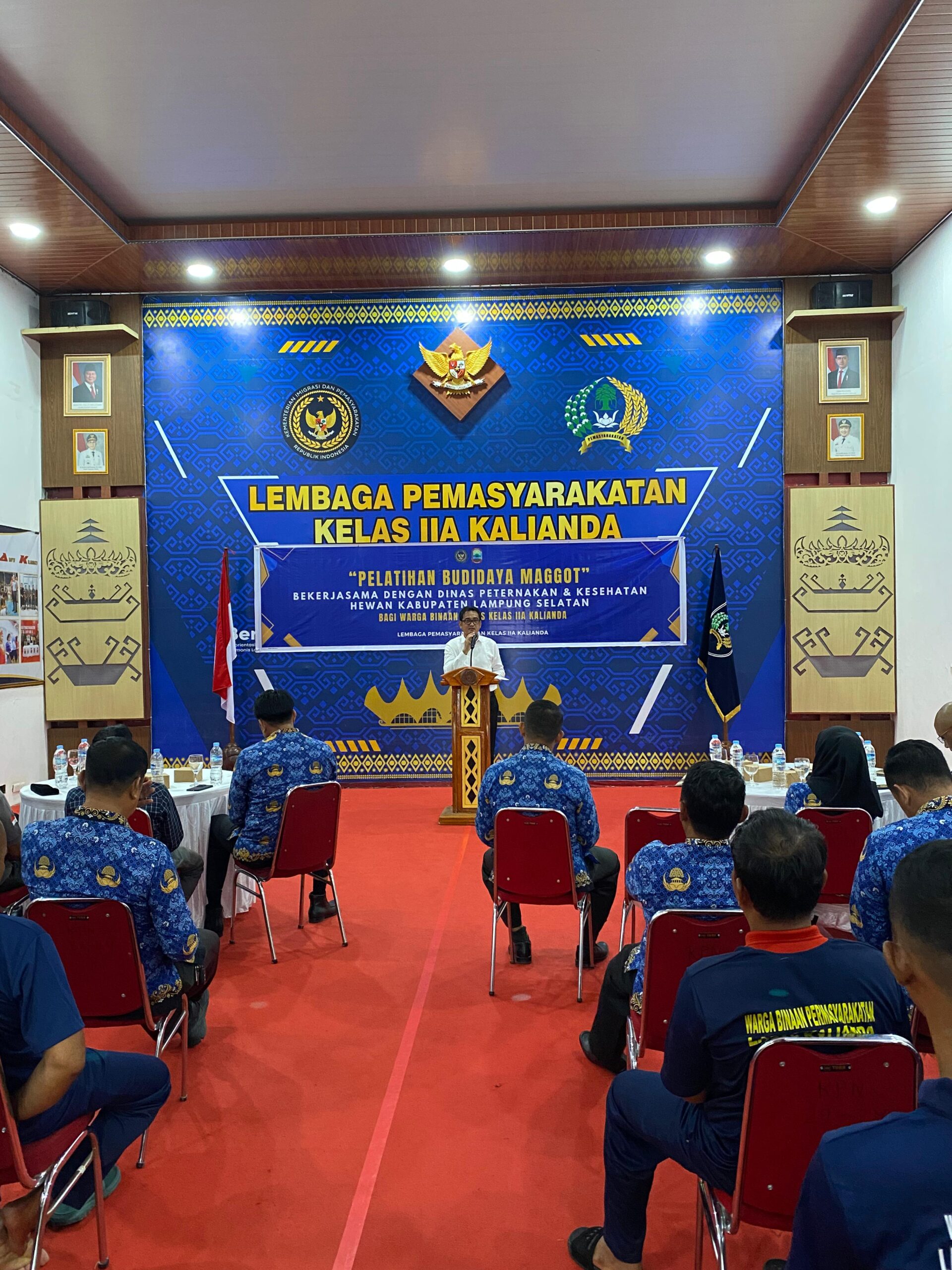 Kalianda – Lapas Kelas IIA Kalianda menggelar kegiatan pembukaan pelatihan budidaya maggot bagi Warga Binaan Pemasyarakatan (WBP), bekerja sama dengan Dinas Peternakan dan Kesehatan Hewan Kabupaten Lampung Selatan, Senin (10/11).