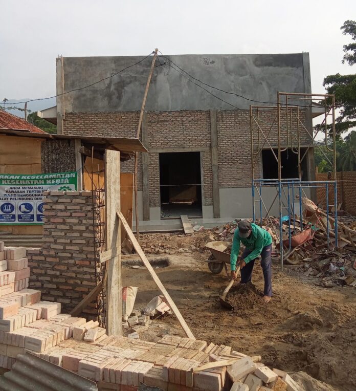 Tiba di lokasi proyek bernilai 1,2 M tersebut, struktur bangunan sudah berdiri kokoh, atap gunakan rangka baja sudah selesai terpasang, dan ruangan sudah sebagian besar dipasang keramik. Begitu pula untuk dinding sudah sebagian besar diaci semen, lubang WC sudah digali, dan platpon sudah sebagian besar di cat warna putih. Begitu juga untuk pembuangan air dan sebagainya sudah terpasang secara baik. (asof)