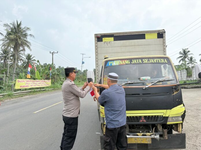 Lampung Selatan – Dalam rangka menyambut Hari Ulang Tahun ke-80 Republik Indonesia, jajaran Polsek Katibung Polres Lampung Selatan melaksanakan kegiatan patroli hunting dan dialogis yang dikombinasikan dengan pembagian bendera Merah Putih kepada para pengguna jalan, khususnya pengendara roda empat.