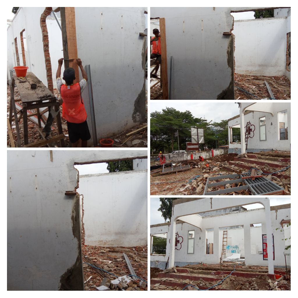 Tampak terlihat, para pekerja sudah lakukan pembongkaran atap gedung, kusen pintu dan jendela, penggalian tanah di lokasi. Bahkan, pekerja juga sudah tidak sabar mulai lakukan pengadukan semen dan membobol tembok.