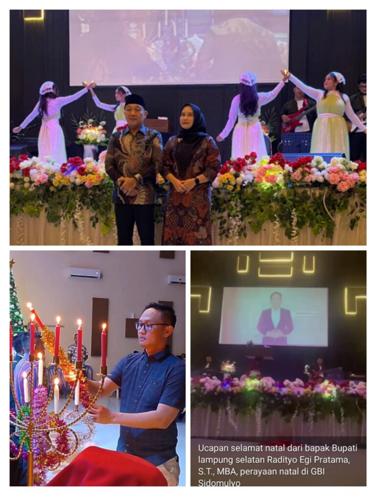 Dalam kesempatan itu, turut ditayangkan ucapan selamat Natal dari Bupati Lampung Selatan Radityo Egi Pratama melalui layar utama, menambah kekhidmatan acara.